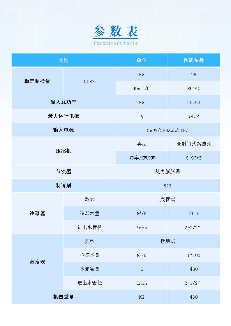 - 30匹冰水機采用鈦管蒸發(fā)器又稱鈦炮,結(jié)構(gòu)是采用鈦管及PVC管精制而成,徹底杜絕了因海水腐蝕蒸發(fā)器而產(chǎn)生的系統(tǒng)故障,同時具備良好的保溫效果,以及外表美觀等優(yōu)點,為分體式及開放式冷凝機組之最優(yōu)蒸發(fā)器搭配。